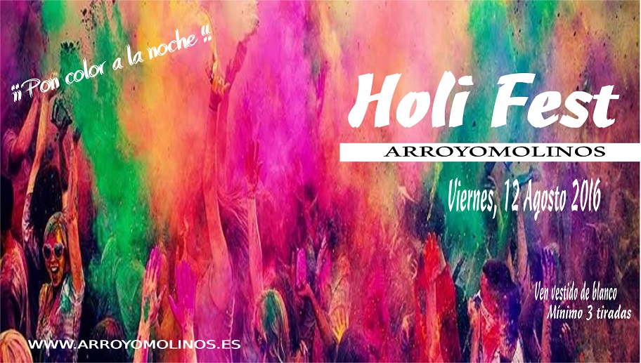 El 12 de Agosto de 2016, se celebrará el Festival Holi, sobre las 21:00 horas en Arroyomolinos. Estamos ultimando el emplazamiento, que se comunicará en breve.