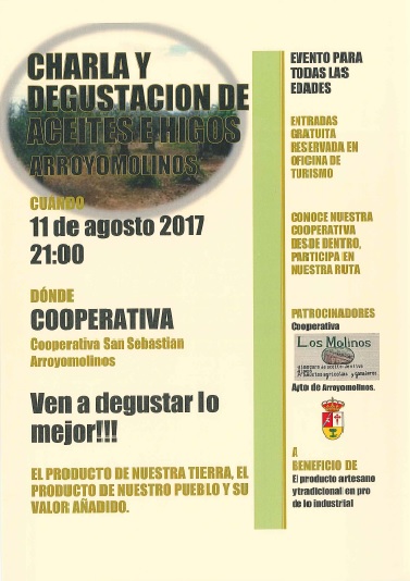 El viernes 11 de Agosto a las 21:00 h tendrá lugar la I CHARLA Y DEGUSTACIÓN DE ACEITES E HIGOS en la COOPERATIVA SAN SEBASTIÁN, ARROYOMOLINOS. La finalidad de este evento es realizar una jornada, donde mostremos nuestros principales productos gastronómicos, también dar a conocer las diversas propiedades que poseen. Uno de los objetivos fundamentales es demostrarles a los asistentes que pueden disfrutar de los platos y postres más exquisitos con estos productos naturales.
