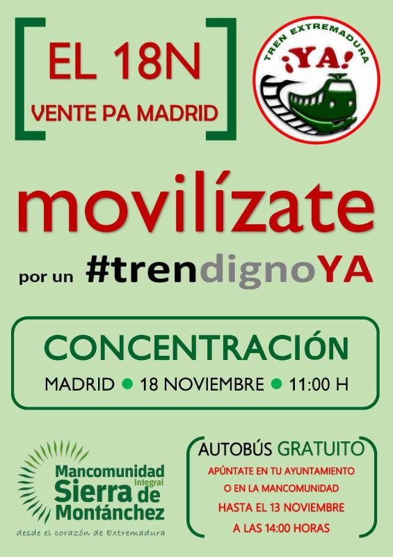 CONCENTRACIÓN EN MADRID POR UN TREN DIGNO ¡YA! 08 noviembre 2017 AUTOBÚS GRATUITO APÚNTATE EN EL AYUNTAMIENTO HASTA EL 13 DE NOVIEMBRE A LAS 14:00 HORAS AUTOBÚS GRATUITO APÚNTATE EN EL AYUNTAMIENTO HASTA EL 13 DE NOVIEMBRE A LAS 14:00 HORAS