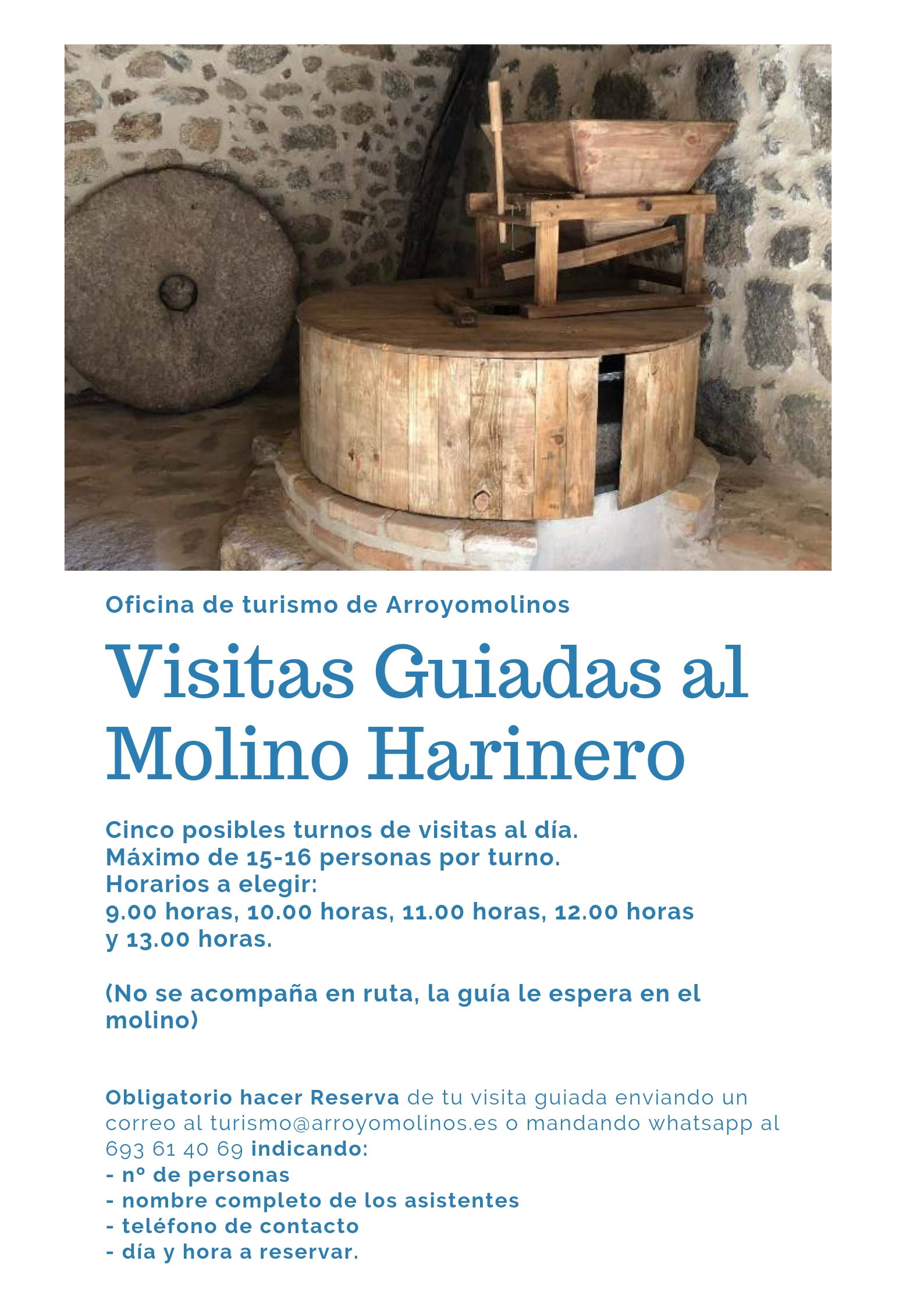 Obligatorio hacer Reserva de tu visita guiada enviando un correo al turismo@arroyomolinos.es o mandando whatsapp al 693 61 40 69 indicando: