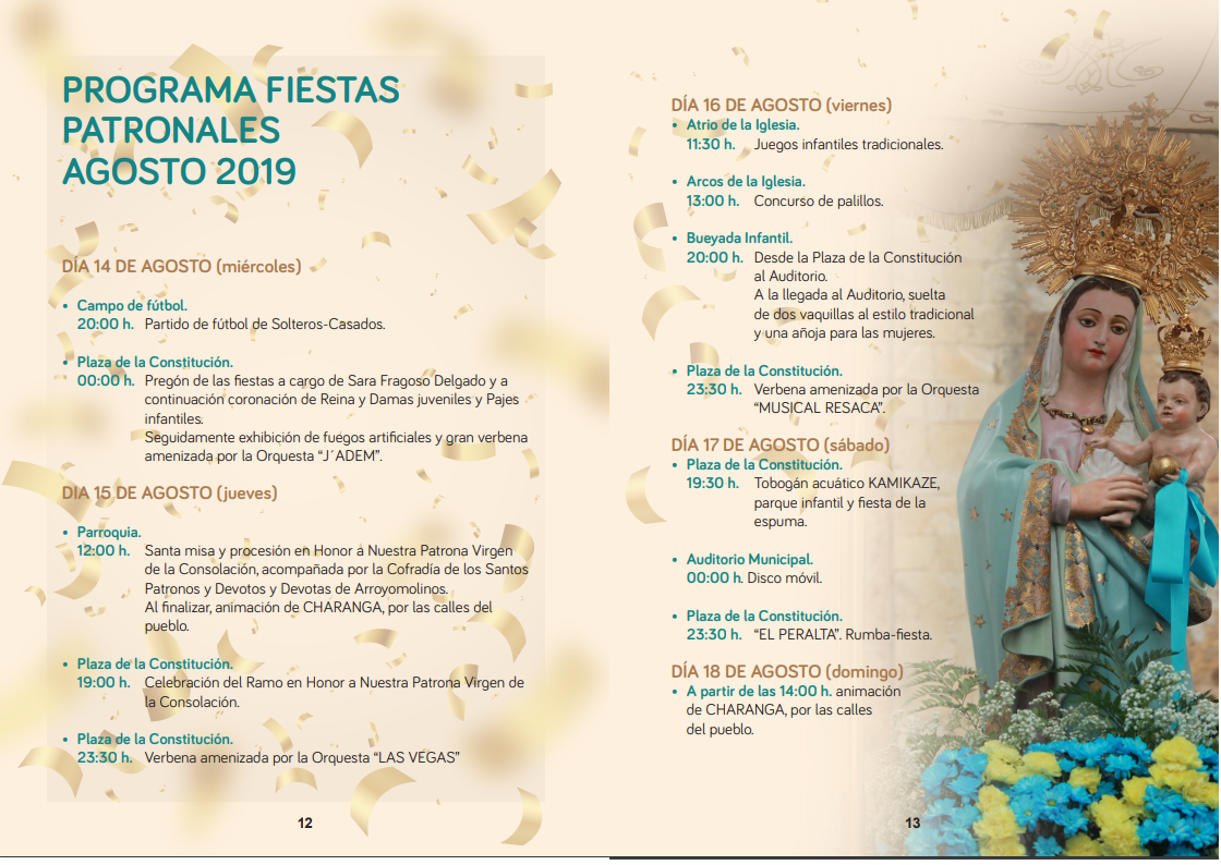 PROGRAMA FIESTAS PATRONALES AGOSTO 2019 EN HONOR A LA VIRGEN DE LA CONSOLACIÓN